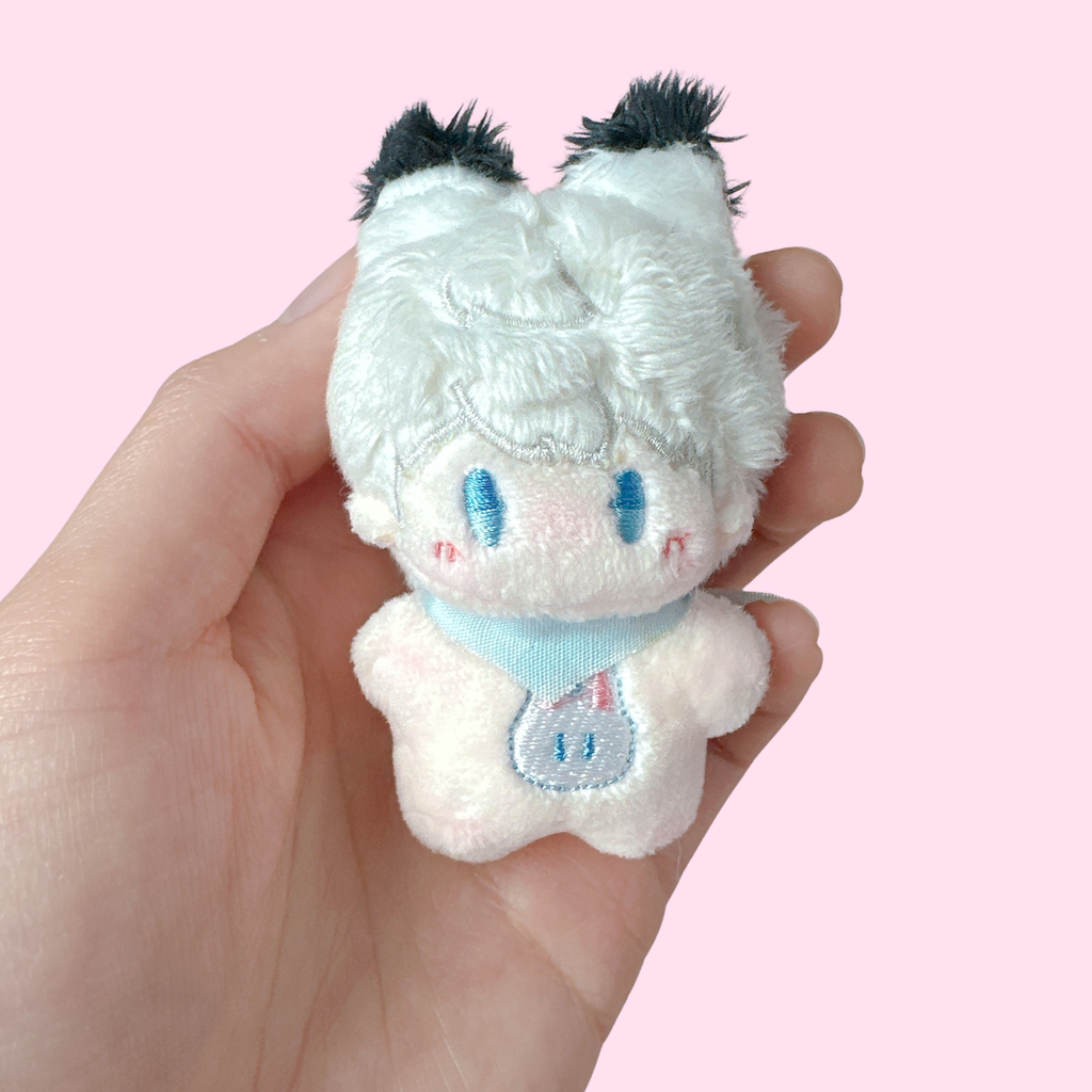 Your boyfriend has turned into a tiny plushie you can fit right in the palm of your hand đ„șđ Take him everywhere and style him with one of his cute outfits!
