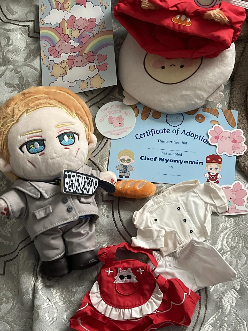DISCLAIMER: Please note that no two plushies will look EXACTLY the same, which means that you can be sure to own a unique one of a kind plushie! There may be some irregularities found on the plushies. There also could be some unevenness found on the embroidery and the clothes. Nanami's red chef outfit may cause some slight staining to occur.
